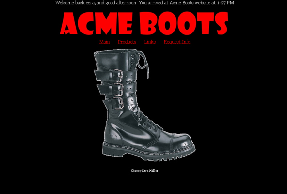 Website with an emphasis on Javascript, including use of cookies and form checking.