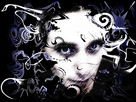 "Grunge Portrait" combining customized brushes and masking technique.